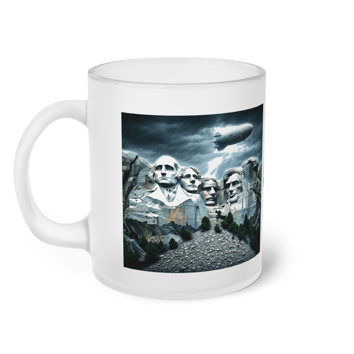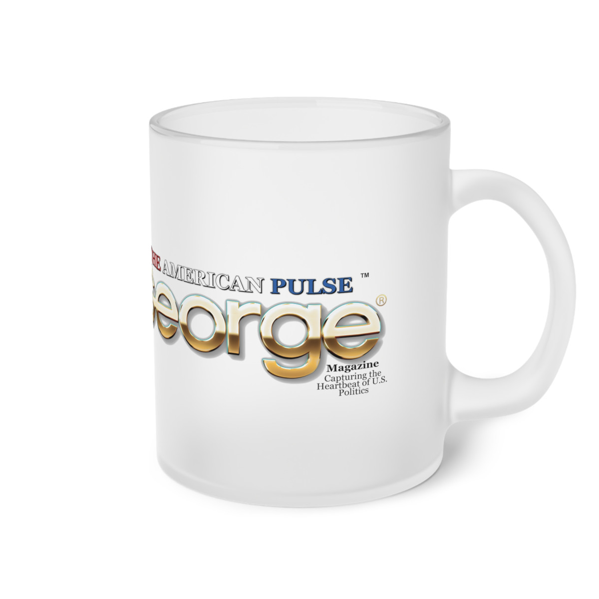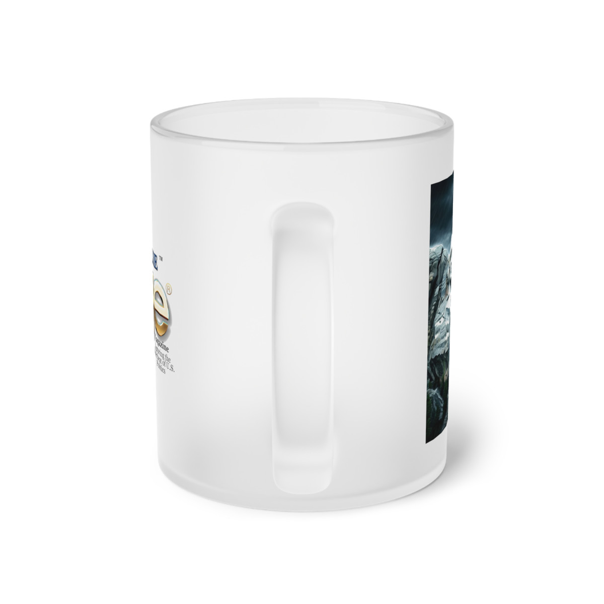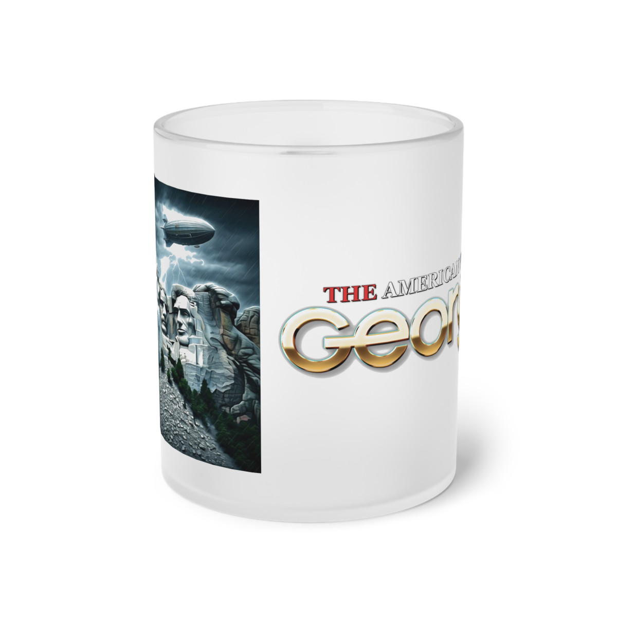 Enjoy every sip with the Frosted Legacy Mug, a striking combination of history and exclusivity. On the front, the legendary Mount Rushmore photo captures a piece of America’s past, while the George logo on the back adds a modern touch of class.